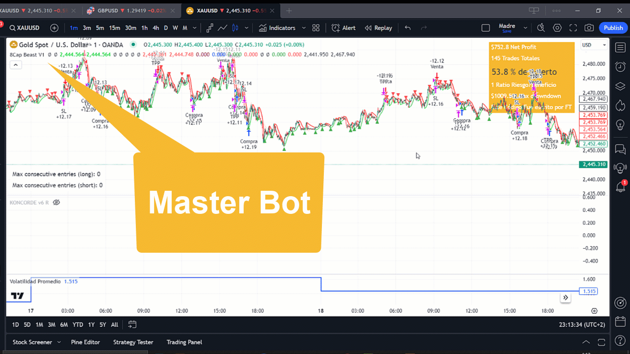 Crea, prueba y ejecuta bots con gestión profesional de riesgo en trading View